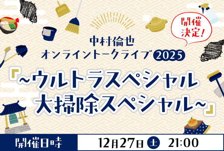中村倫也オンライントークライブ2025「〜ウルトラスペシャル大掃除スペシャル〜 」を配信いたします。